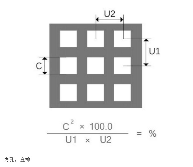 冲孔网开孔率指的是冲孔区与整张板之间的一个比例,常用百分比来表示。现在让我